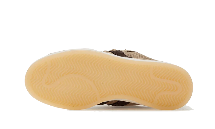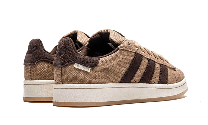 La Adidas Campus 00’s Tokyo présente une base en chanvre beige, accompagnée de trois épaisses bandes en daim marron sur le panneau latéral, caractéristiques de la marque et accordées au heel tab. Proche de la Campus 80s, ce modèle dévoile également une semelle jaunie, pour accentuer l’effet vintage, assortie d’une outsole en gomme phosphorescente.