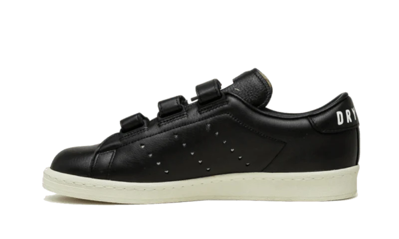 La Adidas Easter Human Made Core Black arbore une empeigne en cuir noir. On retrouve les scratchs de la paire qui comportent l’inscription « Gears For Futuristic Teenagers » ainsi que la signature d’Adidas à travers les cœurs perforés qui vont venir former les trois bandes du modèle. On observe aussi une deuxième inscription « Human Made / Dry Alls » sur le talon ainsi qu’une midsole blanche venant apporter la touche finale à cette création !