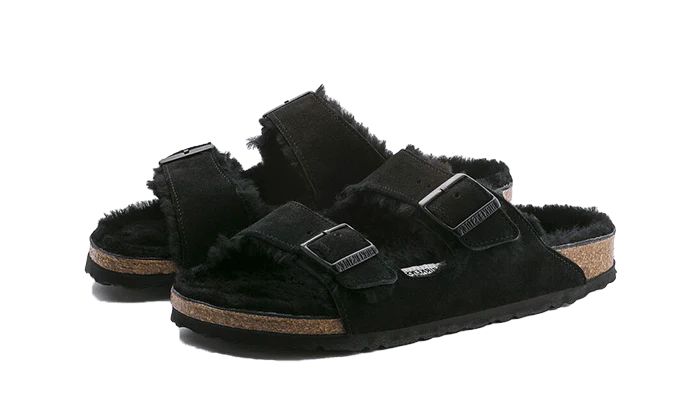 La Birkenstock Arizona Shearling Suede Black dévoile une tige ouverte en daim noir à la texture premium. Sa particularité repose sur sa doublure en fourrure d’agneau qui gardera vos pieds bien au chaud. Une semelle en liège à la forme anatomique vient sublimer le design.