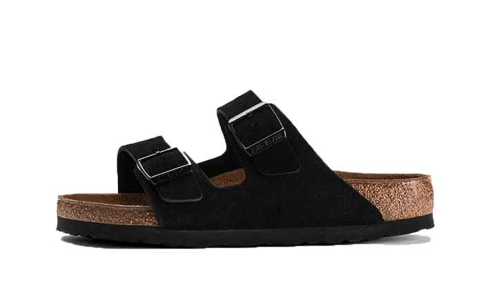 La Birkenstock Arizona Suede Leather Soft Footbed Black dévoile une tige ouverte en cuir noir. Classique parmi les classiques, cette silhouette assure un confort renforcé grâce à un lit de pied en souple en liège accompagné d’un coussin en mousse de latex.