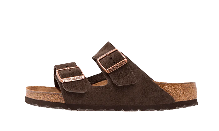La Birkenstock Arizona Suede Leather Soft Footbed Mocha dévoile une tige ouverte en cuir marron. Classique parmi les classiques, cette silhouette assure un confort renforcé grâce à un lit de pied en souple en liège accompagné d’un coussin en mousse de latex.
