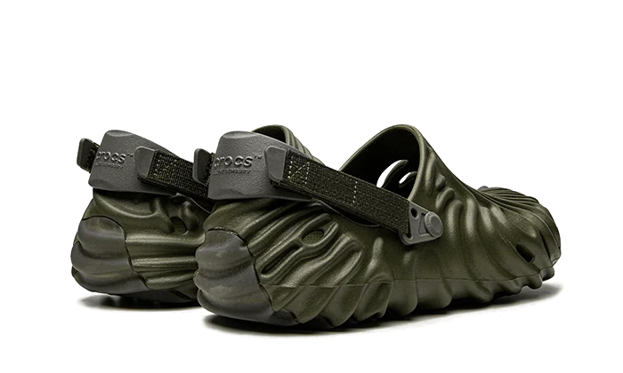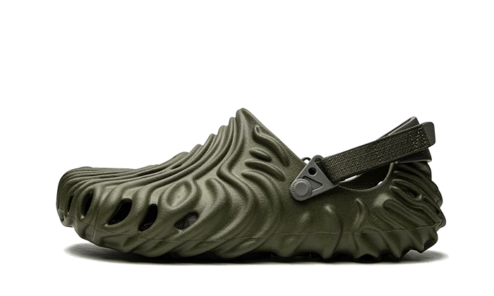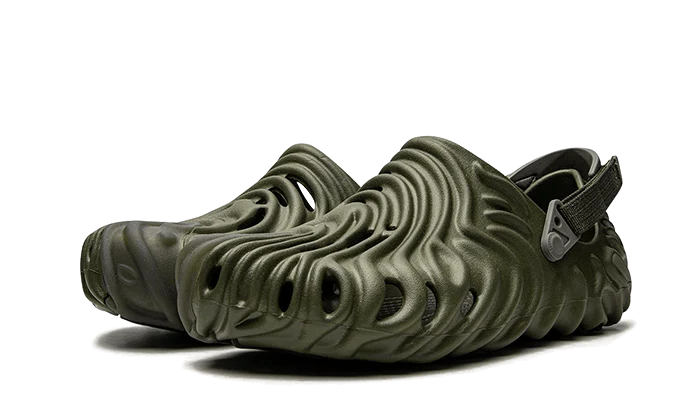 La Crocs Salehe Bembury Pollex Crog Cucumber affiche une structure verte gravée de motifs moulés aux reliefs onduleux qui parcourent l’ensemble de la tige principale. Le modèle revisité laisse apparaitre les empreintes digitales signatures de Salehe Bembury ainsi que des empiècements translucides ton-sur-ton sur les extrémités de la silhouette. Les perforations propres à la marque sont retravaillées ainsi que la sangle interchangeable à l’arrière qui permet une personnalisation originale !